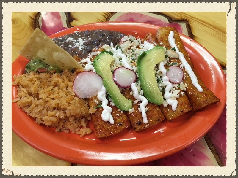 Stepping inside is an escape from the Midwest. With cheerful orange walls and decorated with piñatas, La Poblana has a large flat screen TV that is always playing soccer or a telenovela. Bags of unusual candies made of tamarind (or chicken flavored lollypops!) line the shelves next to dried beans and spices. Serve yourself a Mexican Coke made with real cane sugar, a cerveza, or an exotic fruit soda in glass bottles out of the cooler. Teo runs the kitchen and charms the customers with his personality and sincere smile. Orkiria is quiet by comparison, handling the business and bookkeeping behind the scenes. ADD LInk to full story" credits author